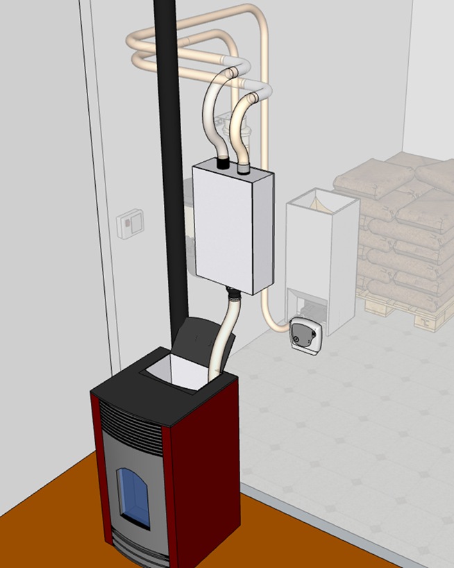 Lors de la délivrance du pellet dans le doseur, l’air qui est aspiré par la centrale d’aspiration repart chargé de la quasi-totalité des poussières.